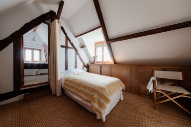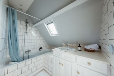 À moins de 2h de Paris, cette élégante longère à colombages est au cœur de la campagne du Pays d'Auge, entre Bernay et Lisieux. Ici, chaque détail a été pensé pour transformer un séjour en souvenir : spa privatif, grands espaces de vie, et cette atmosphère normande qui invite aux longues tablées et aux balades dans les vergers.