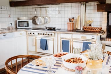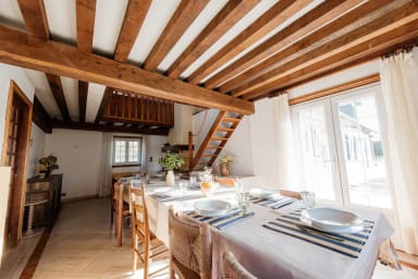 Cuisine conviviale et salle à manger au charme authentique, avec poutres apparentes et poêle. 6 chambres spacieuses pour accueillir jusqu'à 15 voyageurs. Literie hôtelière, linge de maison fourni, et ces petits détails qui changent tout : produits essentiels et café fournis, jeux de société, livres.